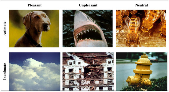 - Yang, J., A. Wang, M. Yan, Z. Zhu, C. Chen, and Y. Wang. 2012. Distinct processing for pictures of animals and objects: Evidence from eye movements. Emotion 12: 540–551. [Google Scholar] [CrossRef] [PubMed]
