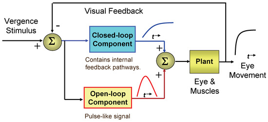 2011) features a pulse signal, but this component can be altered by feedback and therefore is not truly open-loop. All of these models include additional internal feedback signals usually driven by efference copy. This additional control signal may be essential to achieve the speed and stability of the vergence response (