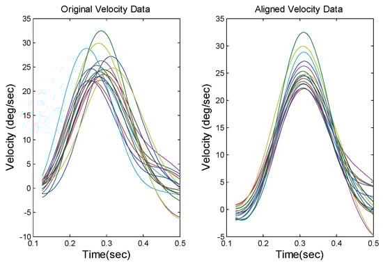 To isolate the early response, it is easiest and most accurate to use the ensemble average of individual velocity traces. To eliminate the influences of variable response latencies we first align the responses based on the time of peak velocity,