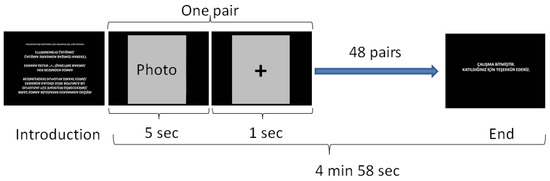Forty-eight photos with emotional facial expressions were presented to the participants in random order on 17 inch TFT monitor as represented in Figure 1. Each photo was presented on the screen for 5 seconds, followed each time by a one-second photo, showing a black plus sign in the center of 14,5x17 cm gray box.