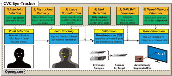 The pipeline of the eye-tracker and our contributions on top of the base code.