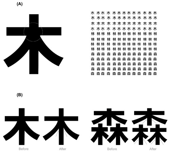 - Chao, C. Y. The gradation and mitigation for the complicacy of Chinese characters. Master’s thesis, Department of Industrial Design, National Cheng Kung University, Tainan City, Taiwan, 2005. [Google Scholar]