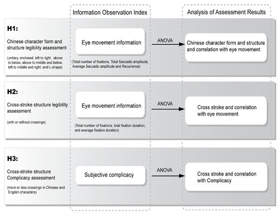 This research focuses on the effect of stroke-crossings on visual complicacy and eye movement and proposes the following hypotheses and experiment framework, as illustrated in Figure 2.