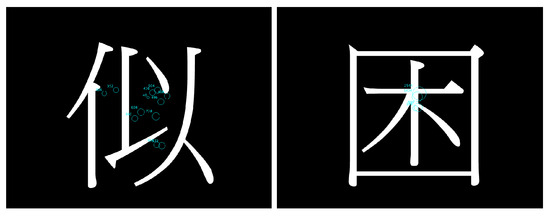 The experiment was manipulated with the stroke crossings (comparison of characters with and without crossings) as shown in Figure 6, as the independent variable and total number of fixations, total fixation duration, and average fixation duration as three dependent variables.