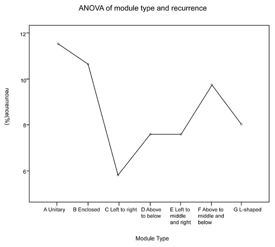 ANOVA of module type and recurrence.