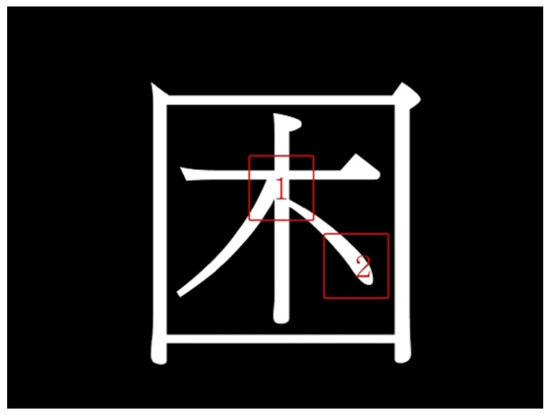 Chinese character structure is multifarious. Each character is arranged into blocks from one or more character components. The components were originally used for organizing words in the dictionary, and thus every character has one primary component, or root. Roots are typically not stand-alone components, such as “、”,“〡”, and “〦”, but can sometimes be their own character, such as “一”, “乙”, “金”, “龍”, and “龠”. Characters are composed of roots and their constituent components, and different arrangements can make different characters, such as “口” and “木” can become “ 困”, “ 杏”, or “ 呆”. One component can also be replicated to create other words of similar concepts, such as “ 木”, “ 林”, and “ 森”. Various other structural arrangements are possible.