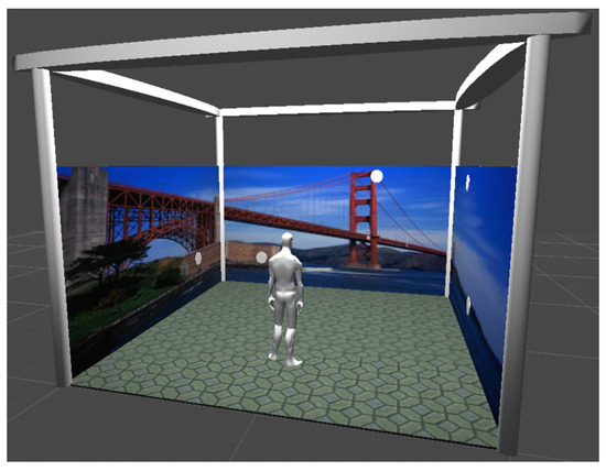 VR Estimation. Eleven subjects were enrolled for the 3D VR scenario experiment. Our VR application consists of an immersive room equipped with a number of sensors and effectors including three projection screens, a sound system, and a tracking system (Figure 15). The subjects were asked to wear the system and, after the calibration phase, to freely walk around the room looking at the three screens. A total number of 10 circles were shown one by one in a random order and unknown position (see Figure 15). The whole experiment duration was of 10 min for each subject. During the calibration phase the head movement correction was performed. The accuracy of the system was calculated in terms of median of angular errors between the circle positions and the estimated eye position across all the subjects, Moreover, a statistical comparison was performed between the accuracy results in the laboratory and in the VR conditions.