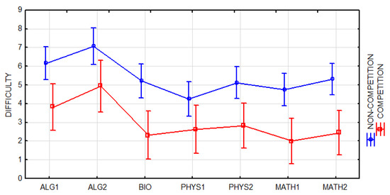 An evaluation of the task difficulty level—differences between the groups: Competition and Non-Competition students.