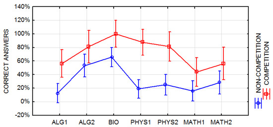 The percentage of correct answers—differences between the groups: Competition and Non-Competition students.