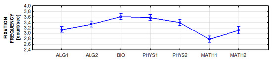 The fixation frequency—a distribution of the mean values for the particular tasks.