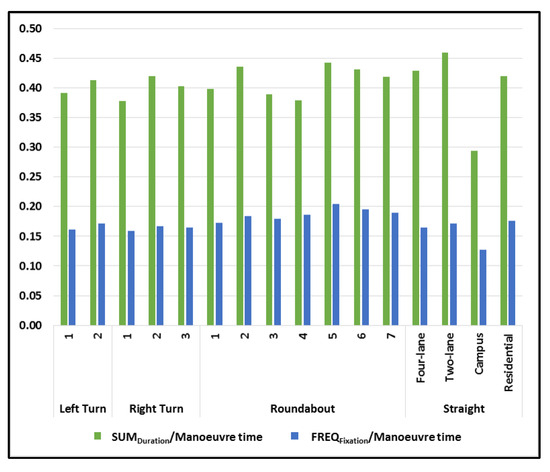 - SUMDuration/Manoeuvre time (the ratio of total fixation duration to manoeuvre time)