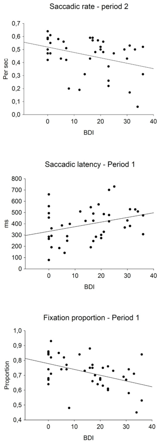 Table 2 presents the correlations between BDI-II scores and eye movement measures in each time period and