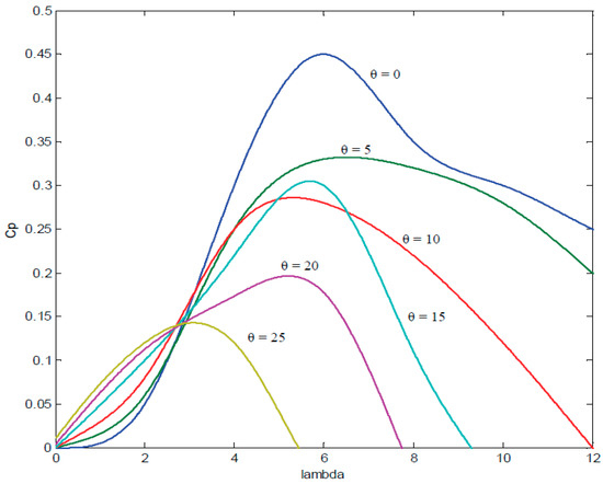 where R is the rotor radius. The performance coefficient’s typical shape is depicted in Figure 2 [31].