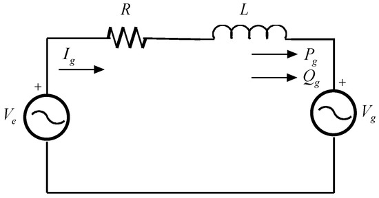 Describing the system in a Park reference frame [33] rotating at the network angular frequency ωe (expressed in p.u. on the rated angular frequency ωg), the Kirchhoff voltage law applied to the mesh depicted in Figure 3 states that: