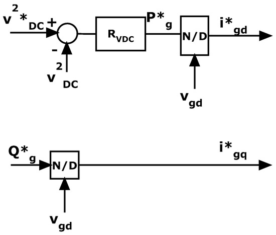 whose poles have a negative real part for any positive value of kPg and kIg. The reactive power control can be addressed simply by recalling Equation (14), which allows to transform the reference signal for the reactive power exchange into a request of quadrature axis current (see Figure 8).