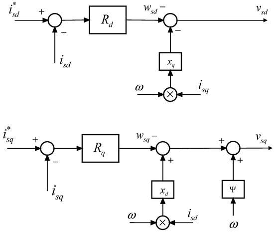 Recalling Equation (11), two scalar regulators can be defined, one for igd and one for igq; furthermore, defining the following two quantities: