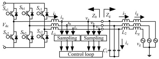 Considering the VSI, its output impedance characteristics would be different in terms of different output filters. Compared to the L-type filter, the LCL-type filter has been widely used in grid-connected inverters due to its higher attenuating ability [11]. However, it needs additional damping methods to eliminate the high-frequency resonances. Apart from that, current control is another important issue for the LCL-filter VSIs [12]. Unlike L-filter VSIs whose controlled current is sampled from the inductor; to LCL-filter VSIs, both the inverter-side current (IC) and grid-side current (GC) can be sampled and controlled, which means that the stability issues of the LCL-type grid-connected inverters would be more complicated under different sampling positions. Although the stability issues of the LCL-type grid-connected inverters have been widely studied in the literature [12,13,14,15,16,17], in the weak grid, most of the studies focus on relevant damping methods to eliminate the resonance resulting from large grid impedance, mainly including the multi-loop control method [13], the filter-based active damping method [14,15] and the virtual impedance method [16]. Among the various active damping solutions, capacitor-current-feedback damping has been widely used for its ease of implementation [12,13]. When it comes to the stability comparison on different current sampling position of LCL-filter, the studies are quite limited. In [12], based on a general mathematical model, a comparative analysis of different control schemes (namely, the grid current control, the inverter-side inductor current control, and the weighted average current control) was carried out in terms of the grid current stability. It revealed that when the inverter-side inductor current is controlled, the grid current shows the same stability as the inverter-side inductor current; but when the weighted average current is controlled, both the grid current and the inverter-side inductor current are critically stable even though the weighted average current can be easily stabilized. Additionally, in [14], the relationship between current sensor positions and LCL-filter resonance frequencies without active damping is analyzed by means of open-loop Bode diagram. It’s concluded that for the GC sampling, the system is stable for the higher resonance frequencies and for the IC sampling, the system is stable for the lower resonance frequencies. In conclusion, there is no detailed model analysis aiming at comparing different control schemes of LCL-filter VSIs.