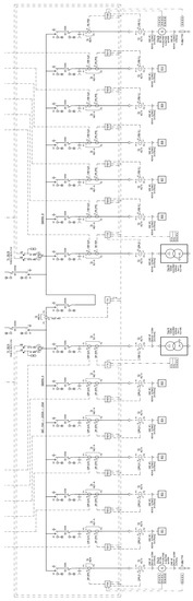 The connection of the power systems to the national grid is performed by means of a MV/HV (20/150 kV) transformer. The HV level is 150 kV since all the energy driven installations are located in South Italy (in North Italy, the HV level is 132 kV). The Italian unit, also called “assembly”, has a rated power of 1.2 MW with 40 modules of 30 kW (see Figure 1b). The structure is composed of a self-supporting latticed frame with shelves for module placement, a Battery Management System (BMS) container part, ventilation, and a cooling system. Each module is protected by a BMS. The BMS includes a disconnection relay that disconnects the battery from any load if the value of any battery parameter is outside the predefined operating range.