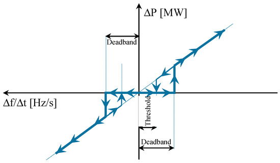 EESS may shift the active power flow direction continuously and take less than 100 ms for a complete inversion (full inversion from maximum discharge active power to maximum charge one) as shown in Section 4. The value of the droop parameter σ may be set to a small value in order to allow EESS to perform a greater active power contribution in case of wide frequency deviations. This service will play a key role since in the European grid there is an ever-growing decreasing of power frequency characteristic of primary control (also known as regulating energy) due to the increase of generation by renewable resources [26].