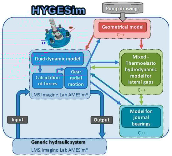 The lateral lubricating gap model for EGMs has been developed in the programming language C++ while leveraging the capabilities of open source libraries such as OpenFOAM [14] and GSL [15]. The sub-models constituting the mixed-TEHD model is schematically represented in Figure 3. The description of the formulation and implementation of these sub-models will be detailed in the following sections.
