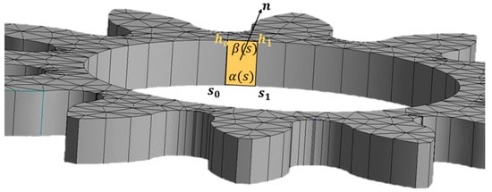 It can be observed from the above equation that although the formula is applied to all the faces in the computational gap, the contact pressures are non-zero only at the contact regions where Equation (13) is satisfied. The point of application of the contact force can be obtained with the help of the following equations: