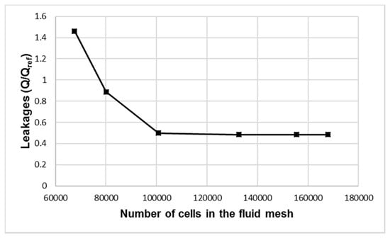 Convergence study for the fluid mesh showing a plot between leakages and total number of mesh cells