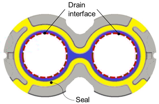 Configuration of the balance side of the lateral bushing in the prototype EGM used in the measurements, with the drain interface marked in red (Dhar and Vacca [8]).