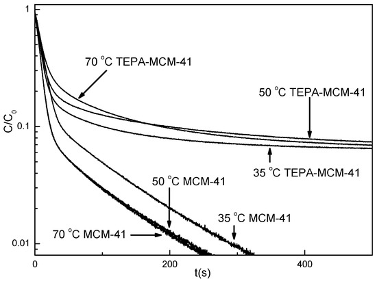 | A (s−1) | 5.4517 | 4.85 × 106 | MCM-41 | MCM-41-TEPA | ||||