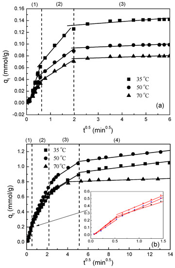 - Rudzinski, W.; Plazinski, W. Theoretical description of the kinetics of solute adsorption at heterogeneous solid/solution interfaces: On the possibility of distinguishing between the diffusional and the surface reaction kinetics models. Appl. Surf. Sci. 2007, 253, 5827–5840. [Google Scholar] [CrossRef]