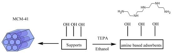 - Liu, Z.; Teng, Y.; Zhang, K.; Cao, Y.; Pan, W. CO2 adsorption properties and thermal stability of different amine-impregnated MCM-41 materials. J. Fuel Chem. Technol. 2013, 41, 469–475. [Google Scholar] [CrossRef]
