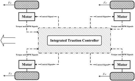- Deur, J.; Pavković, D.; Burgio, G.; Hrovat, D. A model-based traction control strategy non-reliant on wheel slip information. Int. J. Veh. Syst. Dyn. 2011, 49, 1245–1265. [Google Scholar] [CrossRef]