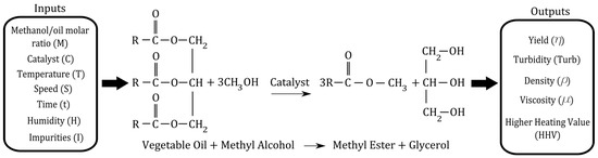 Inputs and outputs variables in transesterification process of Biodiesel production.
