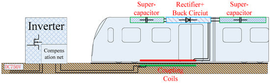 Wireless power transfer (WPT) systems have been widely developed for applications to rail transit vehicles because they avoid direct electrical connection, which can help eliminate the danger of electrical sparks and provide automatic power supply [,,,]. In recent years, some initiatives (Bombardier´s PRIMOVE and South Korea´s KAIST) have introduced the WPT technology power supply mode combined with the energy storage-type tram [,] to provide more convenient and safe traffic vehicles. Such vehicles do not require a large number of energy storage devices, and this can help make the vehicle more lightweight. In addition, the WPT system renders the power supply safer and more reliable, thus reducing the influence of environmental conditions.