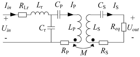 In order to simplify the analysis of the transfer characteristics of the system, the SS compensation WPT system may be arranged as shown in Figure 3. According to Kirchhoff’s voltage law, the following equations are obtained: