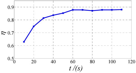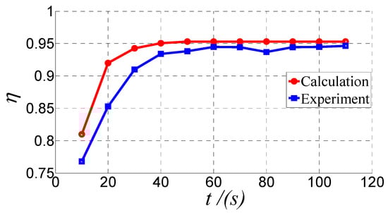 The variation of the coupling system efficiency of the charging process is shown in Figure 18. It can be found that during constant current charging, the efficiency will increase and the maximum efficiency will be obtained with constant power charging. That is because the optimal power is obtained. The experimental results are almost the same with the calculation results in accordance with Equation (30), and the maximum efficiency is about 95%.
