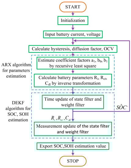 The proposed flowchart of the combination of ARX model and DEKF algorithm.
