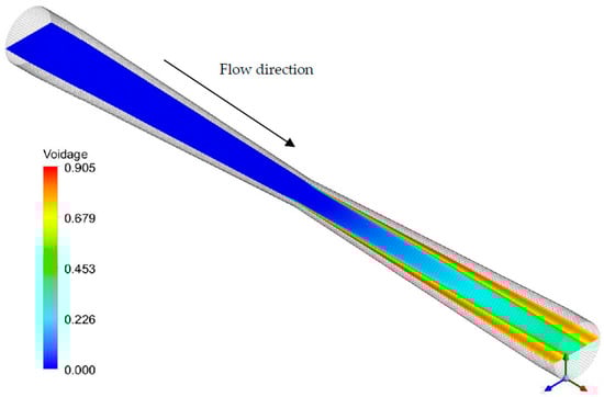 Distribution of the steam volume fraction inside the nozzle.