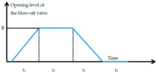The blow-off valve was opened to a maximum level and closed again according to the ramp shape as shown in Figure 13.