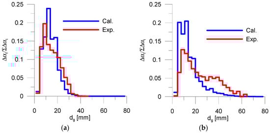 Evolution of normalized bubble size distribution at the WMS plane (Case 2): (a) t = 29 s; (b) t = 49 s.