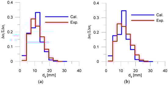 The evolution of the normalized bubble size distribution is displayed in Figure 14 and Figure 15 for the two cases listed in Table 2, respectively. In the vertical axis label, ∆αi represents the void fraction portion belonging to the size group i, while ∑∆αi is the total void fraction. The red line represents experimental data, while the blue one simulation results.
