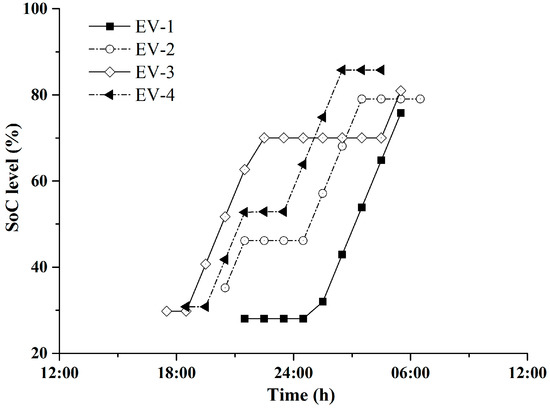 - It is assumed that all EVs are the same, and share same parameters as well as charging and discharging limits. Detailed EV data are listed in Table 2.