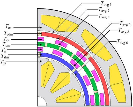 The total output torque TTotal generated by the DS-PM machine is obtained by combining Equations (27) and (28) and can be expressed as: