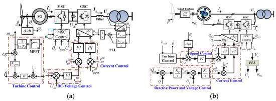 Basic control block diagram of WTs. (a) Type-4 WTs; (b) Type-3 WTs.