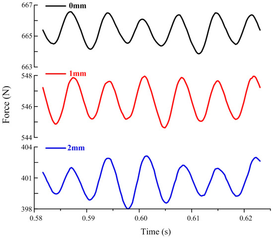 4.2. Radial Force on Principal Axis for Different Tip Clearances