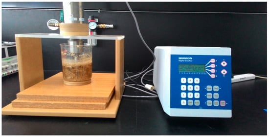 An ultrasound digital sonifier (Branson, Emerson Electric Co., Danbury, CT, USA) was used for pretreating the bagasse with high-frequency waves of around 20 kHz (Figure 1). The amplitude and reaction time were set in the digital human-machine interface (HMI). Then, the transducer horn was immersed in the liquid to pretreat the bagasse.