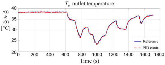 Note that the reference signal considered for control purpose, i.e., the outlet air temperature represented also one of the excitation signals exploited for the identification of the TU model described in [9]. Moreover, the authors have exploited this reference signal since it guarantees the correct working conditions and the validity of the identified model of Equation (4).
