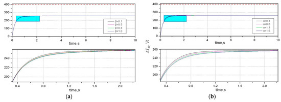 Fan speed response with uncertainty in system parameters. (a) Case 1 by taking ; and (b) case 2 by taking .