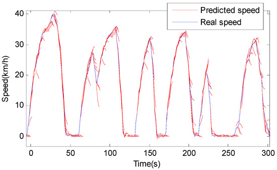 The predicted speed segmentation with a receding horizon of 5 s is shown in Figure 9. As can be observed, the NAR-based speed predictor predicts the micro-trip behaviors effectively.