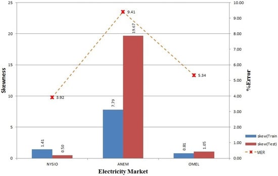 Skewness in training and testing data for NYISO, ANEM and OMEL (2004–2006).