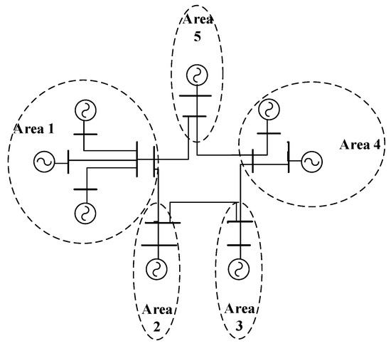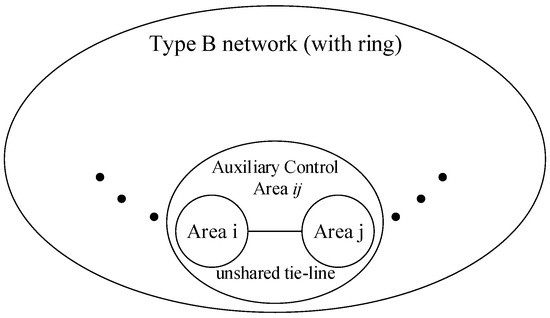 Interconnection of electrical power systems has been the main trend in modern power grid construction [1,2,3]. By interconnection, distributed power systems can assist each other in case of emergencies due to their varied load requirement and capacity outage [4]. Interconnection also offers advantages such as overall cost reduction of reserve provision, frequency maintenance and voltage collapse avoidance, etc., thus enhancing system stability and security [5]. Modern power grids are becoming more and more complex in respect to their constitutions/configurations and interconnection manners [6]. Quantitatively, interconnected multi-area systems have evolved from systems of few interconnected areas to power systems with a large number of areas. Topologically, the interconnection manners are becoming more diversified, and ring topology is among the emerging structures. For example, Chinese power systems are in the process of transforming from simple structures to more complex ones like the Three-China Grid (a three-area ring synchronous network connecting the North China, Central China and East China Grid into an annular structure). A multi-area ring network is also under construction in the East China Grid [7,8].